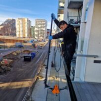 Vi har mange års erfaring med vinduespudsning. Vi pudser gerne vinduer til høje bygninger m.m